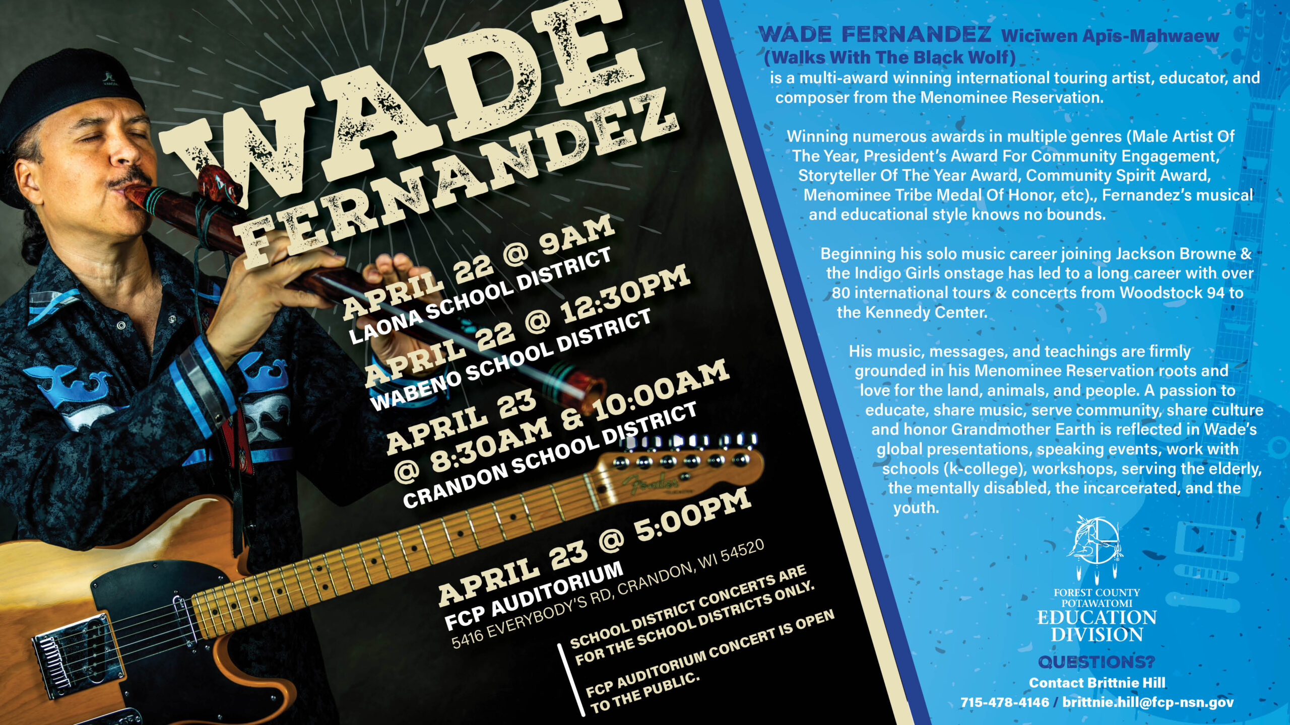 Apr 23 wade fernandez 5:00 pm - 7:00 pm Main FCP Executive Building Auditorium 5416 Everybody's Rd, Crandon Event Details Get Directions